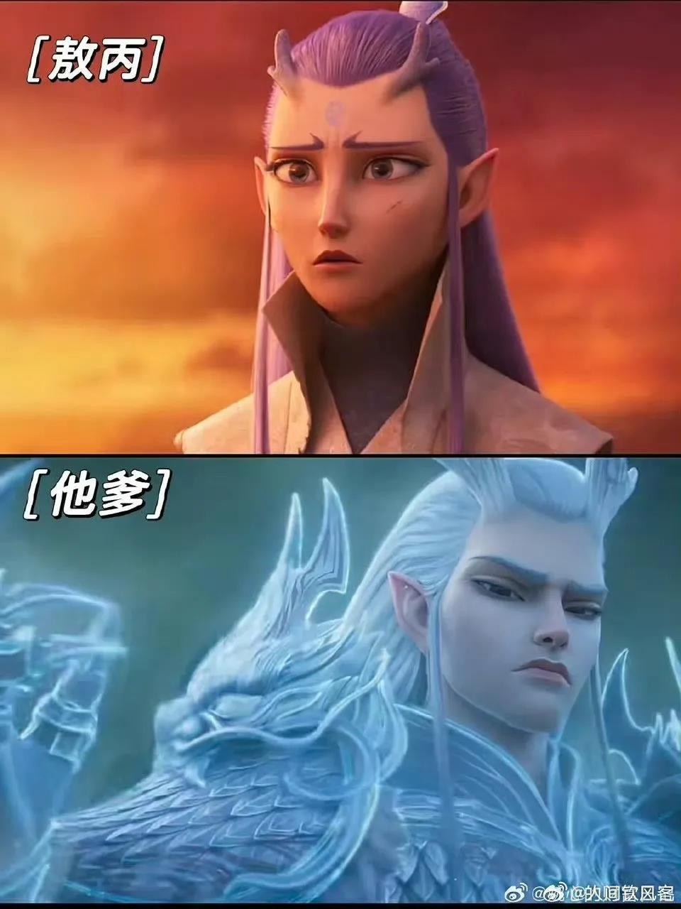 而在敖丙的家中,父亲敖光首次登场,他一袭华服,英俊威严。面对承载着龙族希望的敖丙,敖光眼中满是深情与期许。母亲应龙美丽且强大,温柔目光中藏着对敖丙的无尽疼爱。