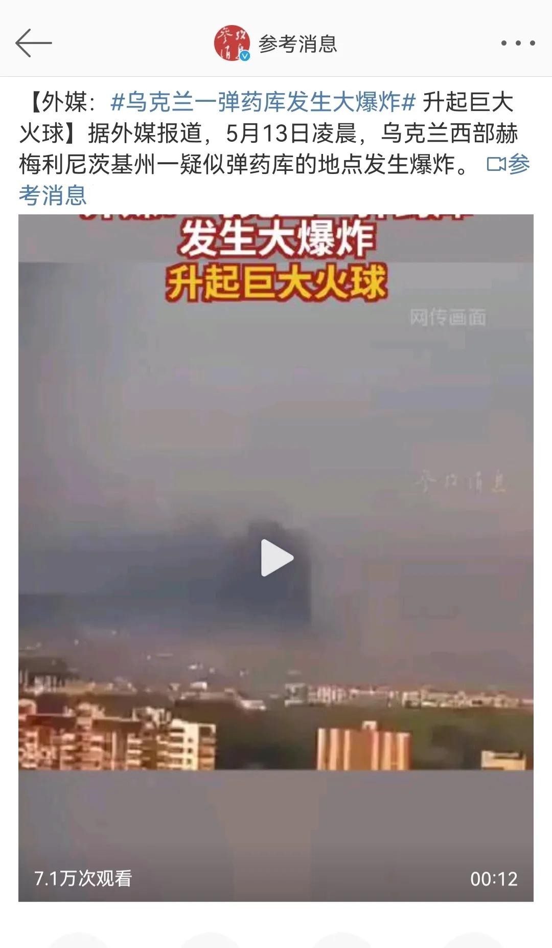 俄罗斯炸毁乌克兰大型军火库。美国兵工厂又要有新订单了。