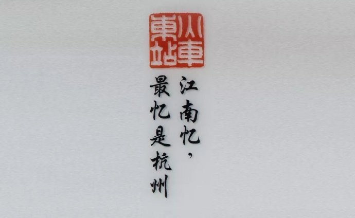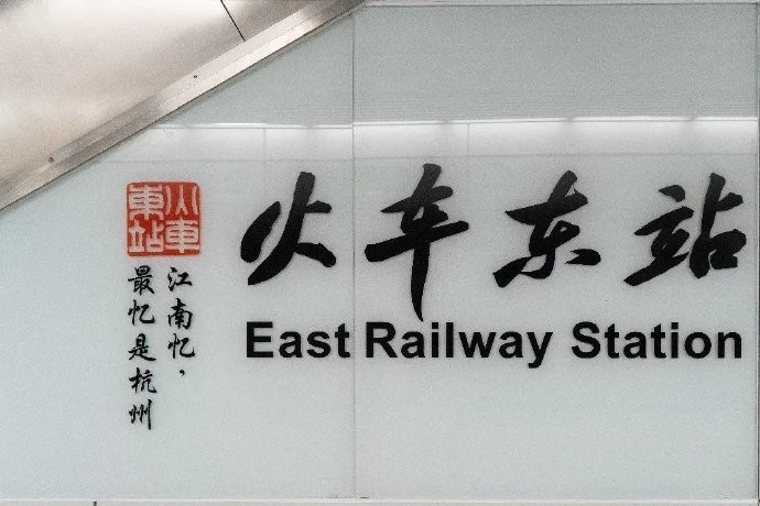 【西湖“搬”到火车东站,“最杭州”地铁文化空间正式亮相】杭州身边事服务大提升改革项目之一地铁火车东站站文化空间于今日正式亮相。门楣、站台层扶梯三角区上的“火车东站”四个字,换上了“苏东坡体”,左下角还有一枚刻有站名的印章和一句唐诗。C出口通道以钱江两岸的山水文人画卷为创意,以《西湖清趣图》为墙面背景,将杭州20个著名景点、地标建筑做成手绘灯箱海报,地面用水波纹灯光加以衬托,充分展现诗画江南的杭州特色,让市民犹如行走在西湖边,别有一番意境。摄影:李忠