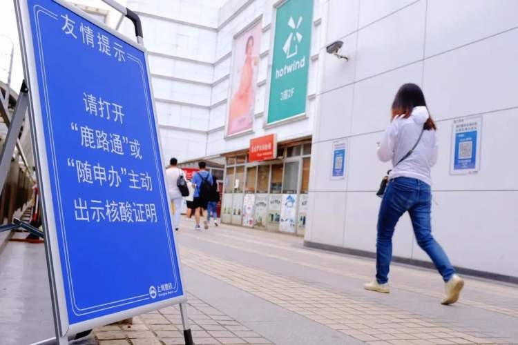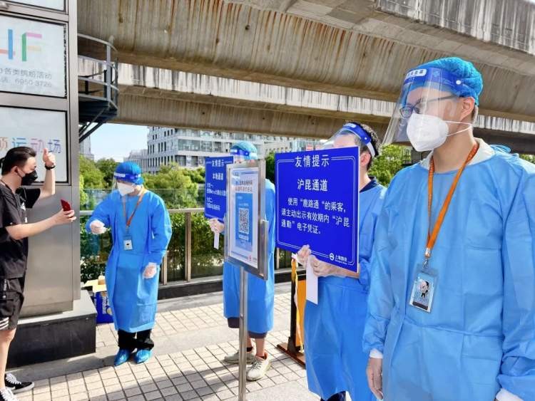 早高峰期间,安亭站加派员工志愿者、安检人员、轨道公安,提前在站外查验沪昆通勤人员先出示“鹿路通”APP,符合规定时限内的核酸阴性要求即可进入通道。