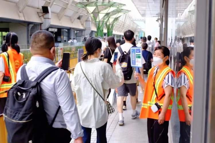 除了人工手举牌,车站员工还将本站场所码信息加设在隔离护栏上,方便乘客随走随扫,在主要通道内不停留不拥堵。助力沪昆两地的交通,车站表示将持续优化客流组织方案,加强共建联建,采取有效手段对轨道交通的顺畅运行提供保障。