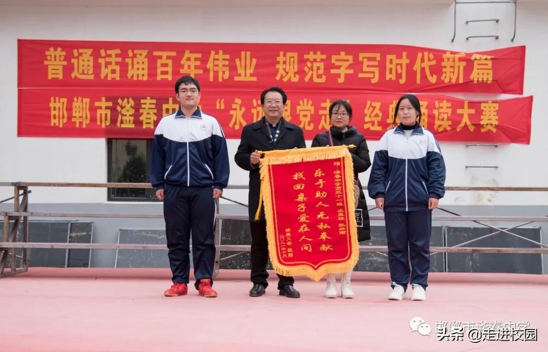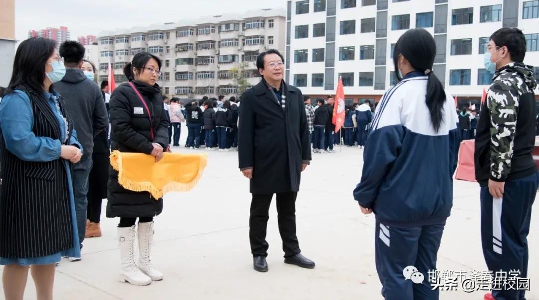 滏春中学党委书记、校长程文峰代表学校接受了家长送来的锦旗,嘱咐家长照顾好孩子并简单介绍了滏春中学办学历史。程文峰校长走到王玺栋、张珊雨两位同学之间,对他们的高尚行为表示高度赞赏,为他们颁发了“最美少年”荣誉证书,号召全校学生向他们学习,号召全校老师向高三年级级部主任闫瑜和十一班班主任郝军老师学习,把更多的学生培养成为品学兼优的合格社会主义建设者接班人。