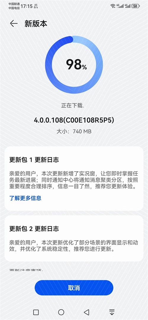 亲爱的用户,本次更新新增了实况窗,让您即时掌握任务最新进展:同时通知中心将通知消息聚类分区,按照重要程度合理排序,信息一目了然,推荐您更新体验。