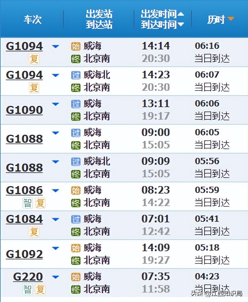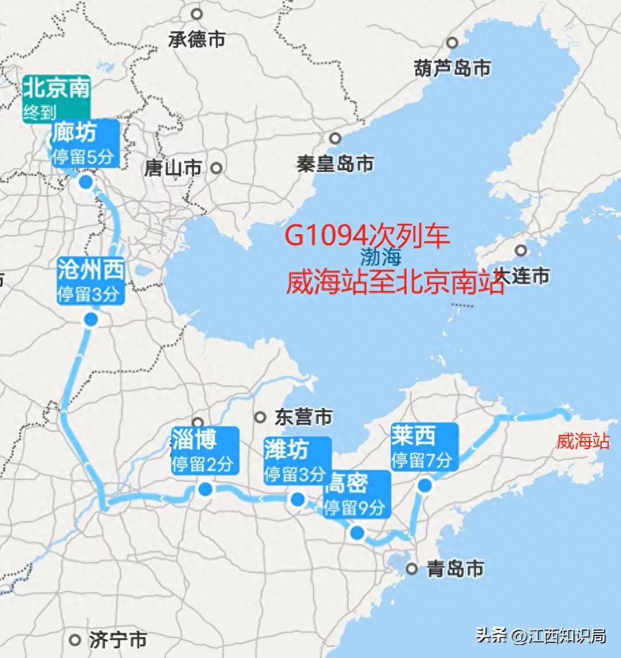 威海至北京最慢高铁,途经济南,G1094次列车耗时6小时16分钟