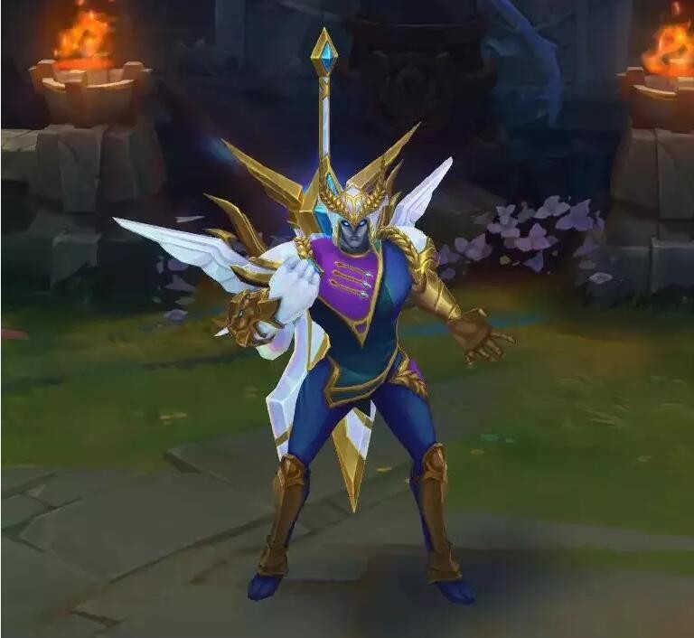 通过官方的消息,我们可以发现这款赛季皮肤延续了一贯的风格。黄蓝相间的配色,让人一看就知道他的身份。有意思的是,在背景故事中剑魔已经从天神战士堕落,但这款赛季皮肤却以光使者的身份出现。不少玩家直言,这或许就是剑魔的前世。