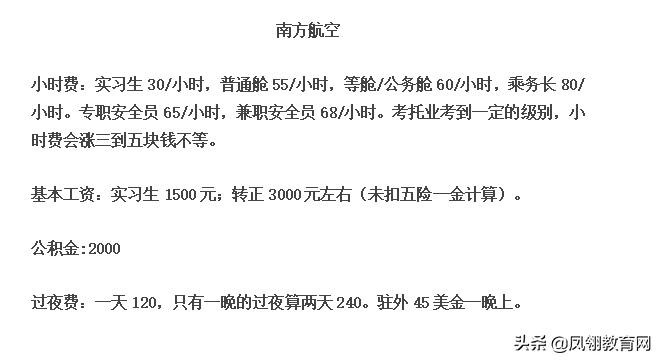 下面是三大航空的一些大概的工资情况: