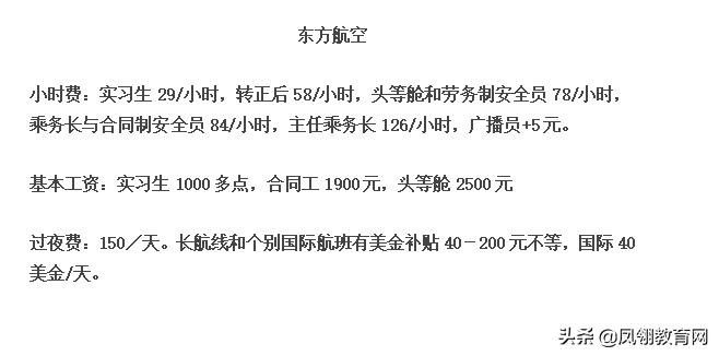 其实空乘工资也分很多等级,实习生和正式员工工资就不一样。外航工资又比飞国内航班的工资高些。一般来说外航空乘能达到1.2w-1.5w。