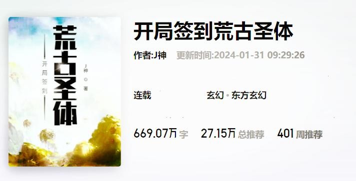 《开局签到荒古圣体》,作者:J神。