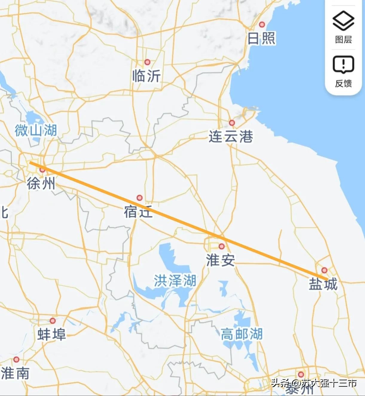 从盐城到徐州基本上是一条直线,非常顺畅。