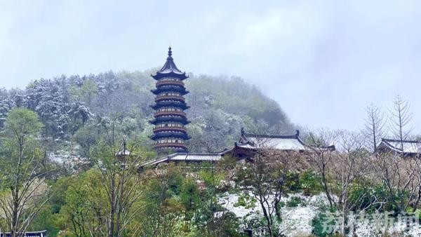 除了紫金山,南京的牛首山、老山等地势较高处,都有明显积雪。在常州,降雪一直持续到白天,落地即融,在溧阳的天目湖和南山竹海景区,漫天飘扬的雪花给翠绿的竹林披上花白的新装,湖面由于温差雾气升腾,宛如仙境。