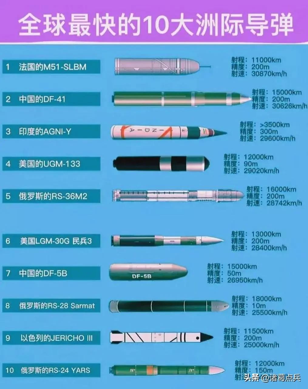 - 弹头:可携带10个MIRV核弹头