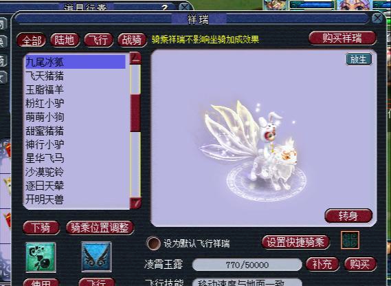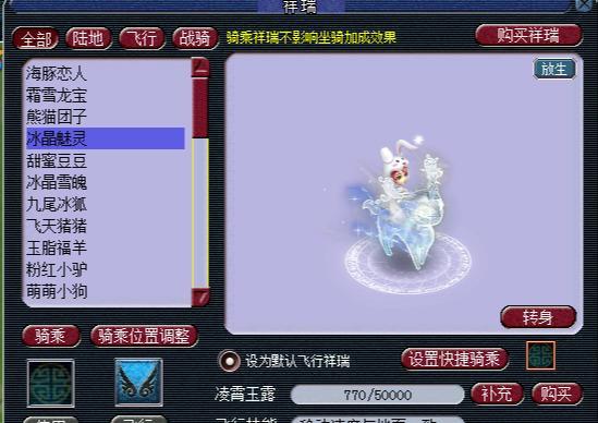 2016年梦幻推出的七夕限量祥瑞是九尾冰狐,这个祥瑞也是梦幻第一个骑乘时有动画效果的祥瑞,其漂亮的外形也是深受妹子们喜爱,虽然现在估价没有天使猪猪那么贵,但是拥有的玩家依然是赚钱的,毕竟没有天青搭配,冰狐搭配也是很好看的,而且也是会额外加钱的。