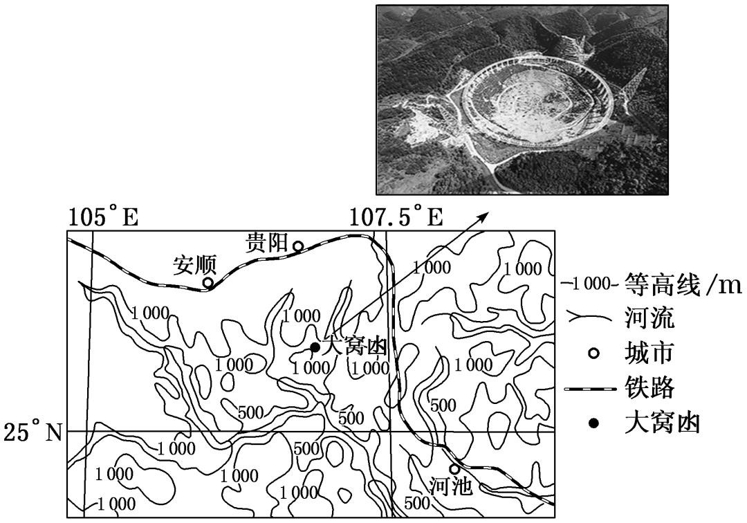 因此可利用天然形成的喀斯特洼地,工程开挖量小;喀斯特地貌区,岩石透水性强,有利于地表水向地下渗透,便于排水;人口稀少(地处偏僻),无线电磁的干扰小(干扰信息小);位于高原区(海拔高),空气稀薄(清洁或大气透明度高);周围高山环绕,能有效屏障周围的人为电磁波干扰。