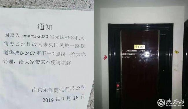 7月23日,陕西网记者来到位于西安市莲湖区西二环甲字1号嘉天smart2-2020室和未央区凤城一路御道华城B-2407室乐伽公寓西安公司办公地址,这里已经聚集了不少来租客、房东,但是办公地址房门依旧紧锁。