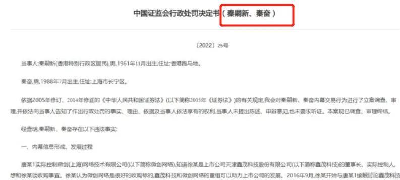 随着被罚60万的新闻上热搜,秦父的神秘身份也被曝光,坊间曾盛传其父是四大银行之一的总行长,秦奋是“银行太子爷”,甚至还有“红三代”的传闻,如今所有的猜测都被推翻了。