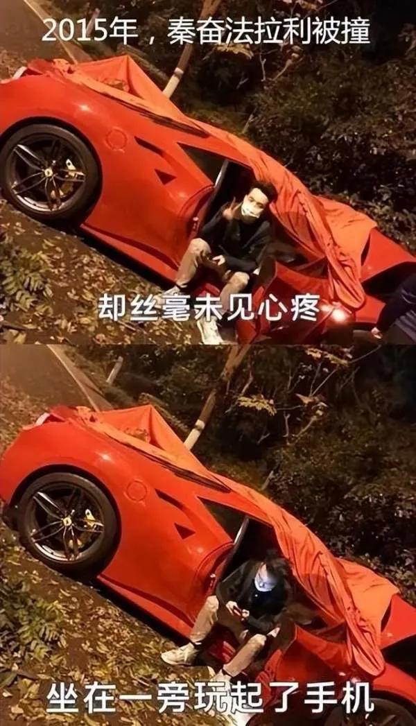 2015年,秦奋驾驶一辆价值3000多万的跑车上路,高速发生了撞车事件,然后,就见他还坐在旁边玩手机,随后他扬长而去,也没有多么在意的样子。第二年,秦奋将2500万的法拉利撞至报废。