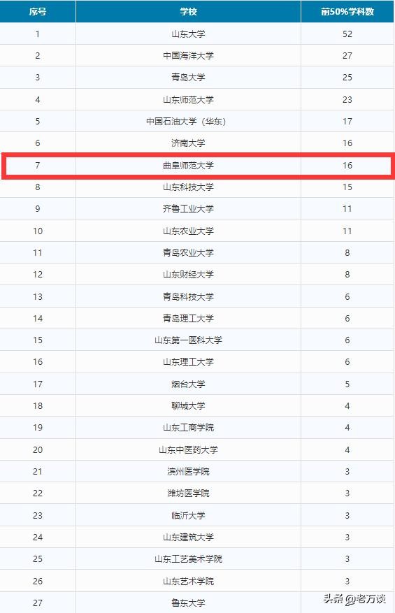 2021软科中国最好学科排名”。曲阜师范大学 16个学科上榜,学科上榜数量位居山东省属高校第3位,其中教育学进入前10%,数学进入前20%,马克思主义理论、体育学、外国语言文学、控制科学与工程和美术学进入前30%,中国史、物理学和计算机科学与技术进入前40%,生态学、心理学、中国语言文学、化学、统计学和音乐与舞蹈学进入前50%,且教育学、生态学、体育学、美术学、音乐与舞蹈学、中国史、数学、控制科学与工程、外国语言文学、心理学、统计学、物理学、中国语言文学、化学等14个学科进入全国百强。