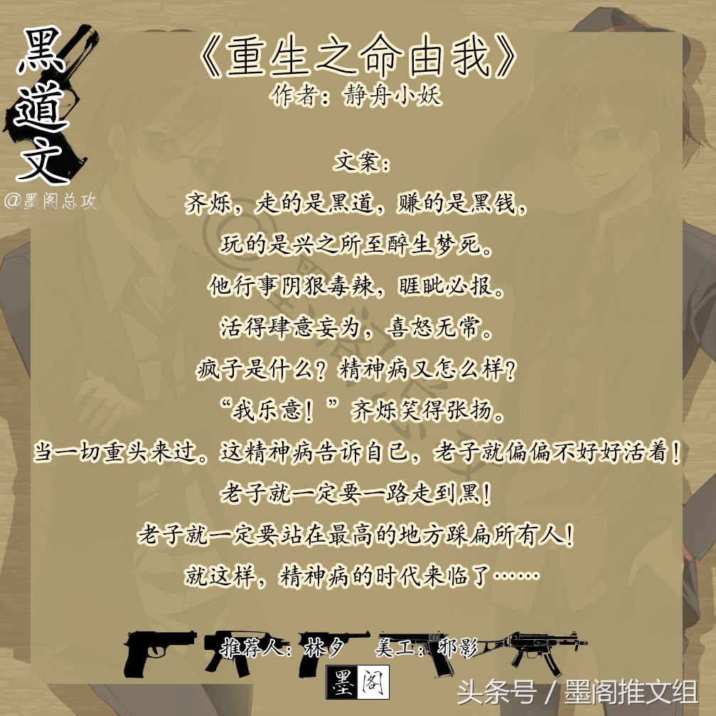 文案:齐烁,走的是黑道,赚的是黑钱,玩的是兴之所至醉生梦死。他行事阴狠毒辣,睚眦必报。活得肆意妄为,喜怒无常。疯子是什么?精神病又怎么样?“我乐意!”齐烁笑得张扬。当一切重头来过。这精神病告诉自己,老子就偏偏不好好活着!老子就一定要一路走到黑!老子就一定要站在最高的地方踩扁所有人!就这样,精神病的时代来临了……