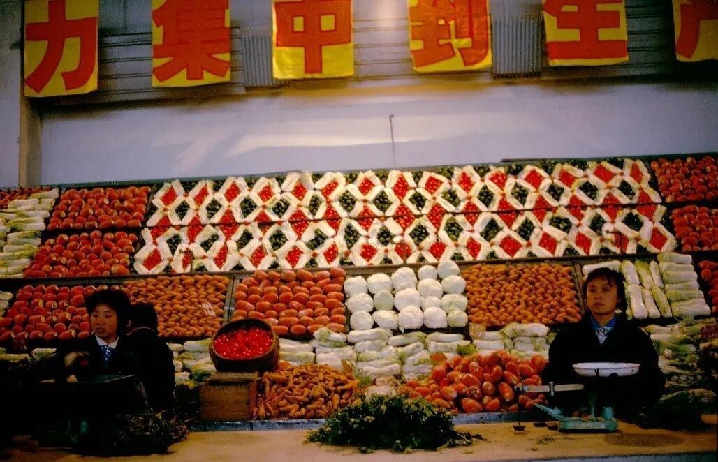 来自1979年的菜场,这摆放很艺术蔬菜的缤纷之色,整齐的摆放,这看起来就很赏心悦目。这是1979年外国摄影师伊芙·阿诺德(Eve Arnold)在中国拍摄的。老照片超话