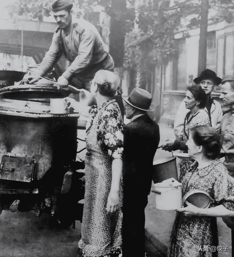 1945年,苏军打进德国柏林后,整座城市都陷入了战火中,不少柏林的市民没有了食物来源,于是苏军的炊事班,在街头支起了锅灶,做好饭后,周围的柏林市民都可以前来领取食物,照片中的苏军炊事员,就是正在给柏林的民众发放食物。