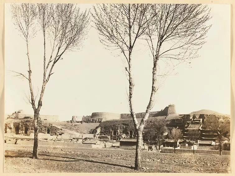 海达 莫里逊1930年代初,拍摄的大同云冈石窟前的寺院,村庄和石窟上面的云冈堡照片。从图上看当年寺院的规模宏大。依稀记得寺院毁于战火。但1930年代后的哪场战火?网络上搜不到。