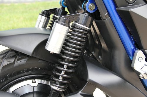 极客采用前CNC液压倒置前叉,后气囊减震,减震效果优秀。据测试,极客在缓冲行程上更长,骑行颠簸路段时响应积极,可从容应对弯道、砂石等复杂路况。