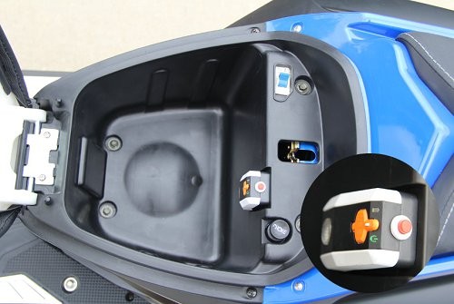 极客鞍座下储物空间平时可以存放小件物品;同时设计有USB插口可给手机充电;座桶灯设计方便车主夜间寻物,体贴的设计方便车主日常骑行。