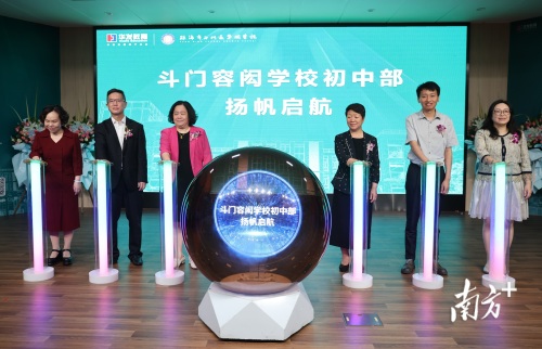 香洲区政协副主席赵文华,斗门区政协副主席李葵,华发集团品牌总监、华发教育公司董事长苏华,斗门区教育局副局长王凯等为斗门容闳学校初中部启航揭幕。斗门区教育研究中心主任尧国军,珠海市华发公益基金会理事长、华发股份发展研究中心总经理席晓乐等参加发布会。