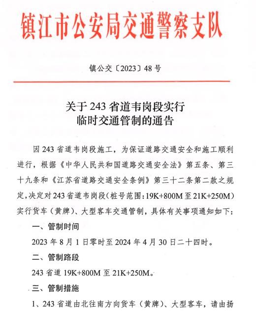 接有关部门通知,S243省道韦岗段将于2023年8月1日——2024年4月30日进行施工,受交通管制影响,2023年8月1日起我公司运营的601路 (含601东昌线)将绕道石韦路行驶。
