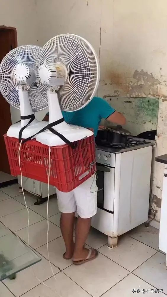 12、应对天气热的好办法,直接背起风扇,就是这样简单粗暴。