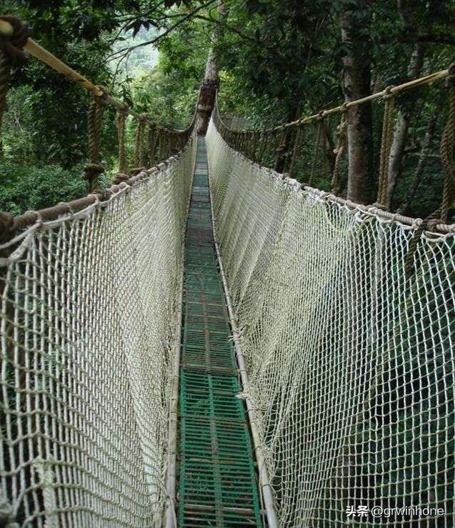 距离地面36米的高空鸟瞰万顷热带雨林。Experience the distance on the surface of the 36 meters high altitude