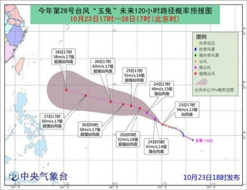 2018今年台风玉兔最新动态消息 26号台风玉兔位置实时路径