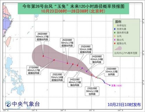 今年第26号台风“玉兔”未来120小时路径概率预报图