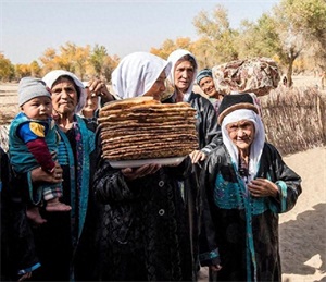 手抓饭,或是烤馕配羊肉,这便是克里雅人最常吃的饮食。