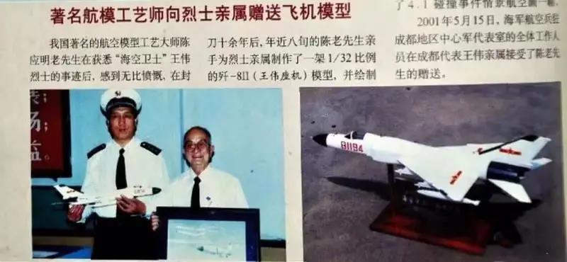 王伟少校失踪后,著名航模工艺师陈应明先生还为其亲手制造了一架1:32比例的歼-8II 模型,交给海军航空兵成都地区的工作人员,由他们转交给烈士家属