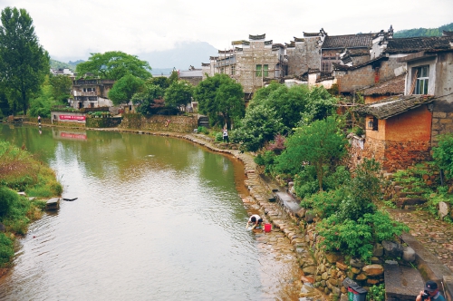 沿着枫溪岸畔走,从倒影里看古镇,看黛瓦白墙荡漾在水面;溪声漱耳,时见河边埋头洗衣择菜的村姑和嬉戏的小孩。一对老年夫妇细心拾掇着刚刚捕获的美味小溪鱼儿,见游客围观,和气地跟大家打着招呼,恬静的表情,淳朴的笑容,给人春风入怀的暖意。