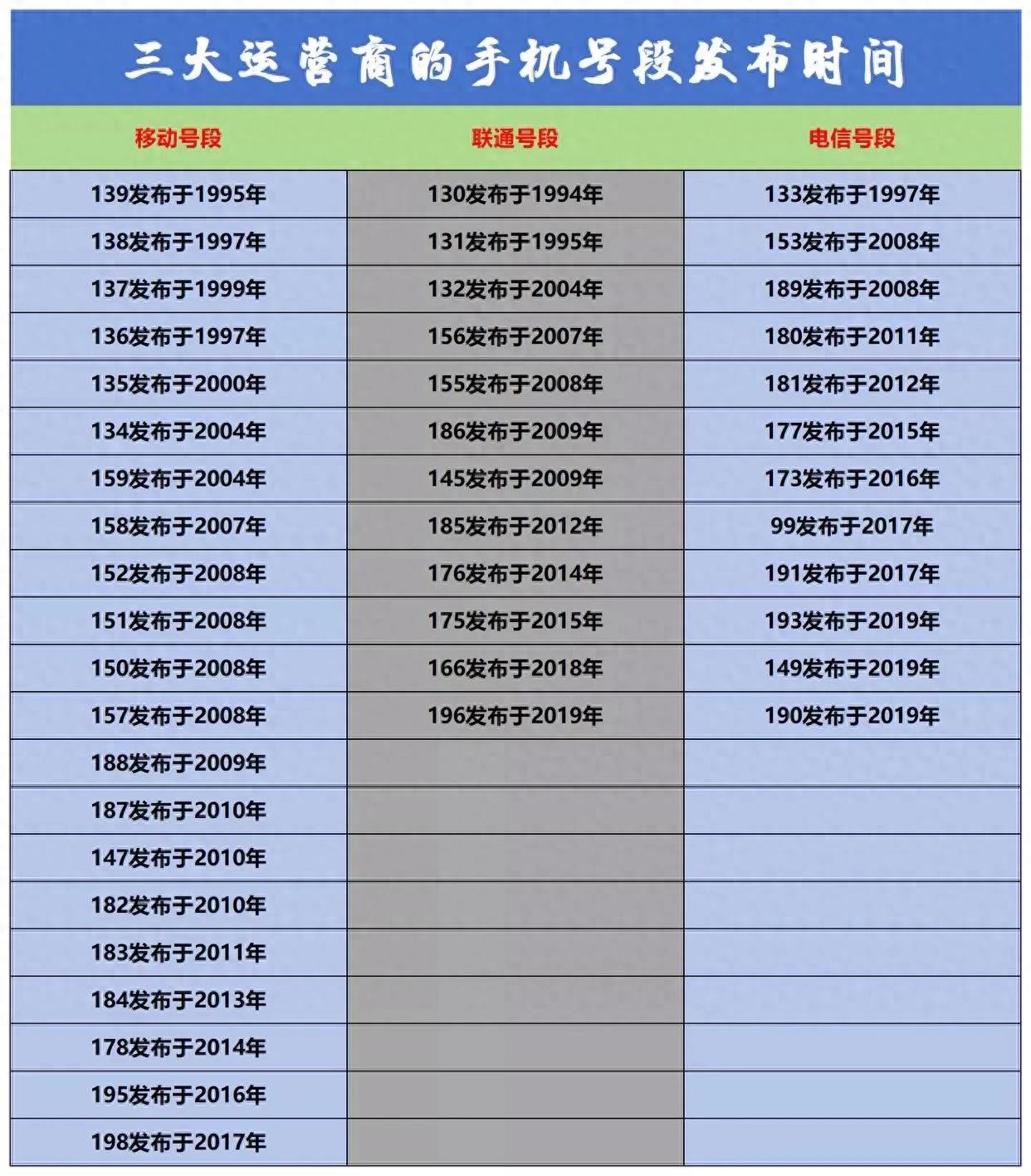 总的来说,三大运营商的手机号段发布时间都比较晚,但都在不断推出新的号段以满足用户的需求。同时,随着5G技术的发展,三大运营商也在不断推进5G网络的建设和应用,为用户提供更加快速、稳定和高质量的通信服务。