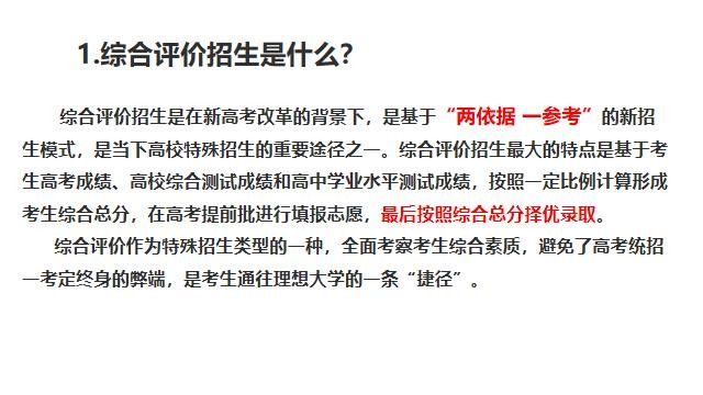 综合评价作为特殊招生类型的一种,全面考察考生综合素质,避免了高考统招一考定终身的弊端,是考生通往理想大学的一条“捷径”。