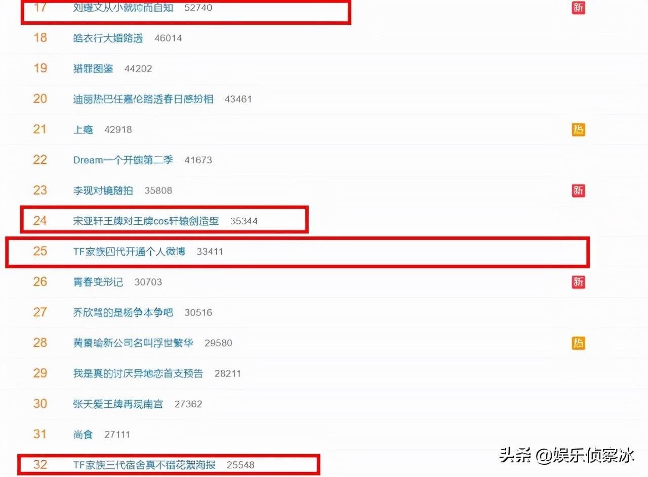 TF家族官博新增六个关注:官俊臣 黄朔 王浩 张桂源 张函瑞 左奇函。从热门文娱榜就可以知道TF家族人气多厉害,某方面也能理解不断出新的急切意图。