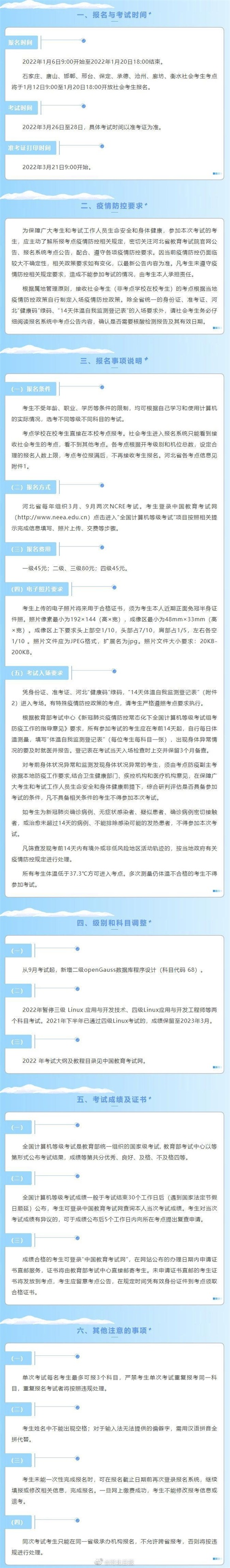 2025年上半年全国计算机等级考试将于3月举行,根据教育部考试中心文件精神,现将河北省考试报名工作有关事项公告。报名时间:2025年1月6日9:00开始至2025年1月20日18:00结束。石家庄、唐山、邯郸、邢台、保定、承德、沧州、廊坊、衡水社会考生考点将于1月12日9:00至1月20日18:00开放社会考生报名。考试时间:2025年3月26日至28日,具体考试时间以准考证为准。准考证打印时间:2025年3月21日9:00开始。