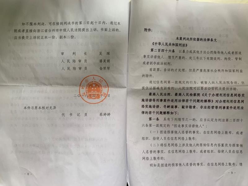 案件判决书。 受访者供图
