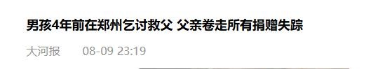 大河报,2015-08-09,男孩4年前在郑州乞讨救父 父亲卷走所有捐赠失踪