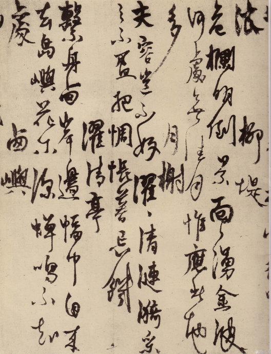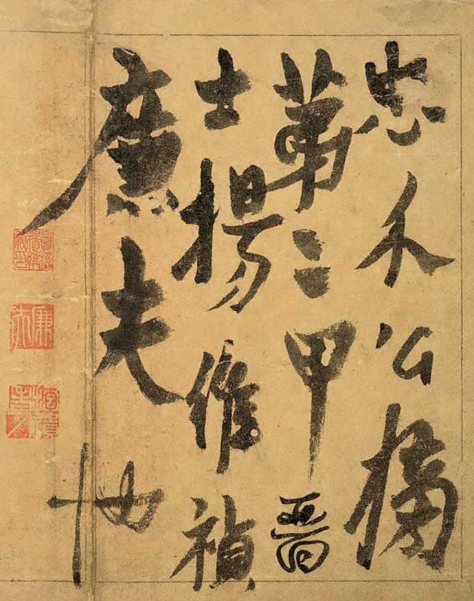 这两幅作品可谓杨维桢的代表作,这儿的笔法呈现偏离传统的大幅度的跳跃,常常侧锋落笔,使点形成三角形的的“头”线条形态劲健、刚硬、横画粗重而有力,走笔果敢迅捷,常有枯笔,进一步加强了枯劲。同于笔法的怪异,线条形相已完全随笔的挥洒而改变,它们在直捷的走笔中不时中不时跳跃,由此产生粗细、重轻、强弱对比鲜明的节奏。不激不厉,圆润轻盈的二王书风在这儿彻底被破坏殆尽,代之而以粗头乱服,不补不履的散僧形象。高度夸张的结体(如“大”字),随心所欲的造型(如“禽叫梦”的“梦”字),恣肆狂放的笔角,让人在剧烈的线条冲撞、纠缠、追逐中惊喜、震动、叫绝。