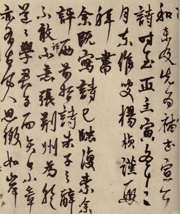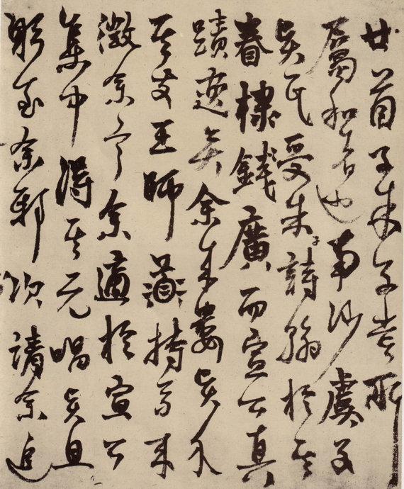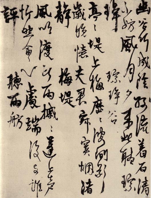元代章草的复兴是从赵、邓开始的,但他们未能对章草这种书体作出什么创新;康里子山以章草笔入今草,对行草书风的改革有所贡献。但未享遐龄,终未形成风格,他书的李白诗卷。虽然精彩,只是惟此一件。而以章草笔法杂以汉隶和今草笔法成功运用到行草书创作并形成自己独特风格的,独有杨维桢一人。他的《募缘疏》,《题〈春消息〉卷》,《梦游海棠诗卷》都是章草、今草笔法相融的典型作品。他的题画诗,如《跋骏骨图卷》,《城南唱和诗卷》,对章草笔意的运用达到了随心所欲、挥洒自如的境界。正是在众多的作品中出现了共同的用笔用墨特点,出现了个人独特的风貌,才可以说风格形成了。从章草入行草的书史看,杨维桢是首创之人,开山之功,功不可没。杨维桢书法形象所体现的激越奔放的气势,刀斫斧劈的雄强,正是筑基于章草笔法的渗入。杨维桢又是极讲随意挥洒、不受法度拘束之人,性情高旷不羁,不修边幅,故天真烂漫之趣流露笔端。况且他又是极讲究笔墨材料的精良。他用的笔是当时著名笔工陆颖专门为他特制的笔,这种笔“尖圆遒健”,用志来得心应手,线条圆泣遵劲;他用的墨都是奎章阁赐墨;纸也大多是有名的白鹿纸,莹泽坚韧,易受墨。所以看起来他是信笔恣纵,但细察实笔法森严。他书法作品卓越的艺术表现力,是诸多因素综合作用的结果。他的墨法,也是具有创造性的特点。民作品的墨色,大浓大深究,大润大枯,这一艺术效果与其特笔法是独特他不开。在他以前,还没有一个书家的用墨有他这样对比强烈、鲜明。特别是浓墨以后的枯笔抹扫。笔力千钧,奇气倔强,前无古人,后无来者。晚明王铎涨墨的运用,或恐得益于杨维桢的启示。