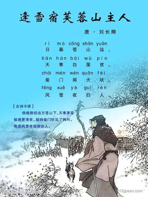 4、有静有动,静动结合,以动写静,以静衬动。日暮苍山远,天寒白屋贫,写静态的景象。柴门闻犬吠,是动态的景物,风雪夜归人看似静,实则动,静中有动。