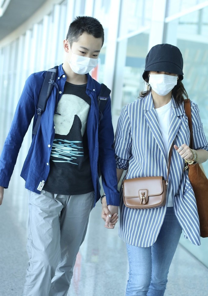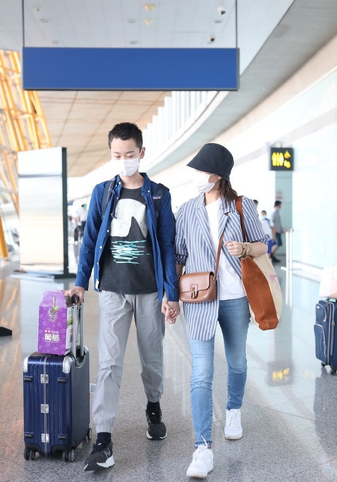海清14岁儿子罕现身,已比妈妈高出半头!全程提行李箱被赞太贴心