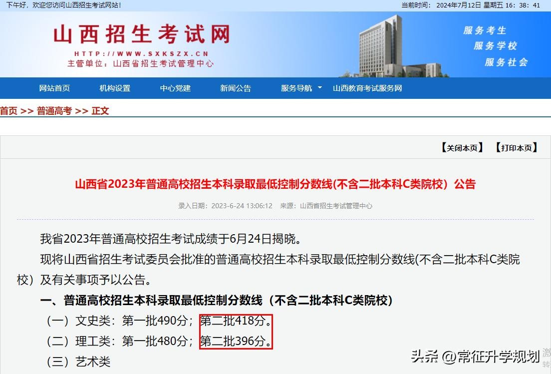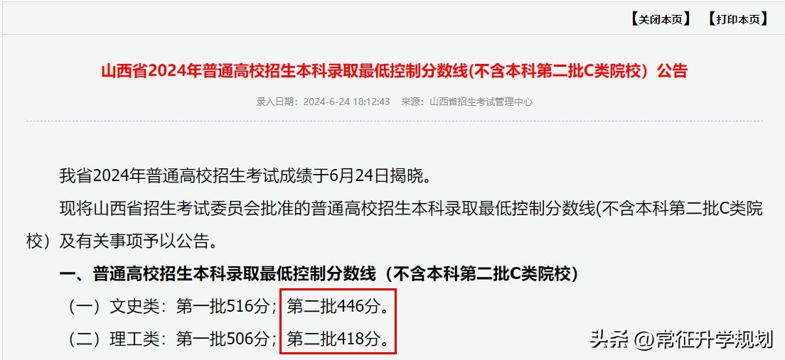 2024山西高考二本分数线,文科446分,理科418分。同比2023山西高考二本线,文科暴涨28分,理科也涨了22分。