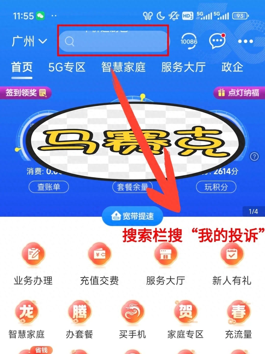 ①在shou页搜索栏搜“我的投诉”——找到【我的投诉】