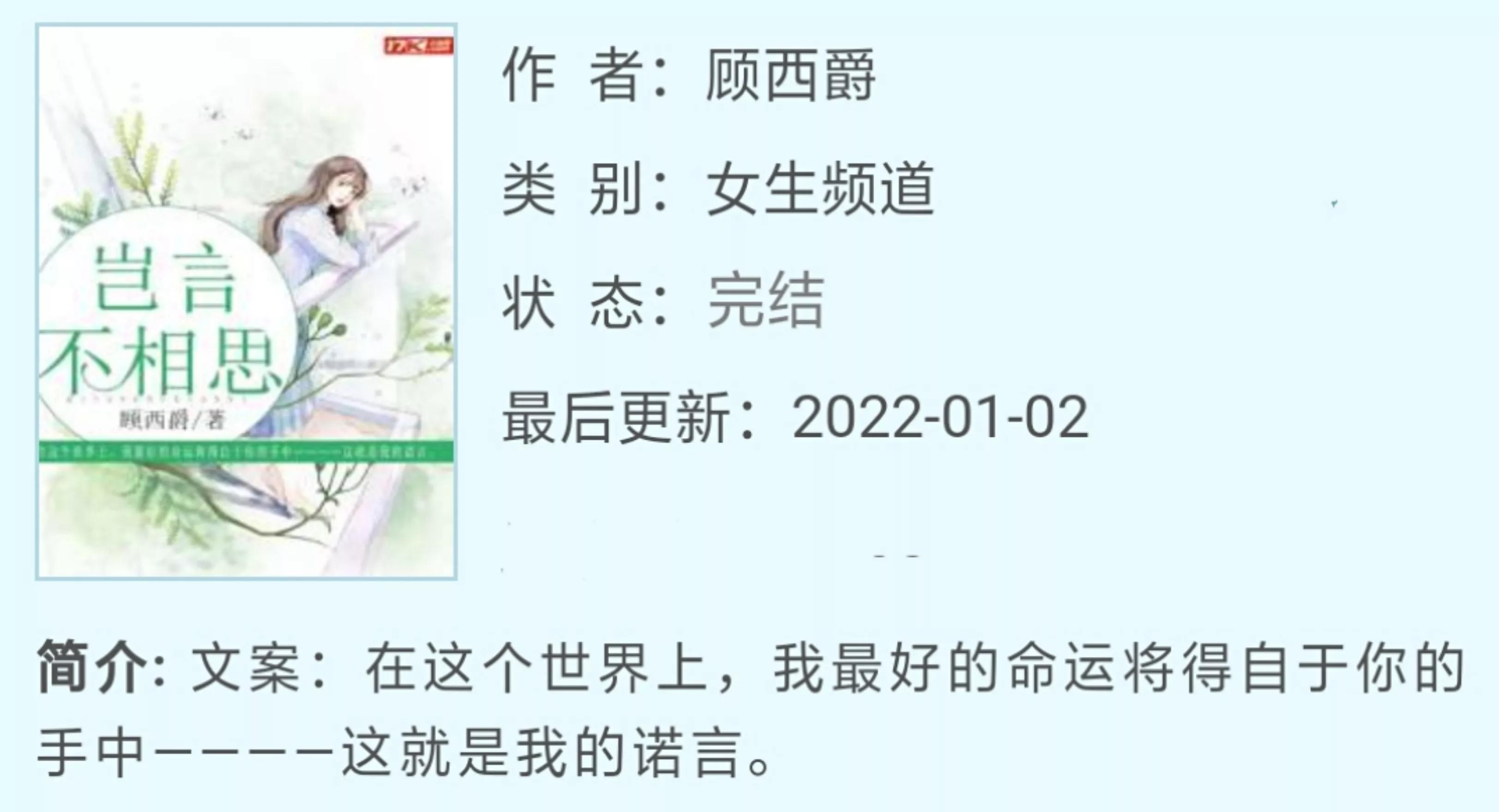 ps:最近在看顾西爵和辛夷坞的小说,说实在话,顾西爵的小说比较简单。辛夷坞的小说总有很多个故事,需要串联起来。没有一定的文字功底和逻辑思维会写成四不像。顾西爵的小说女主得到了爱情,辛夷坞的女主几乎都不得善终……每个作者的文风都不同,但写的都很好看。