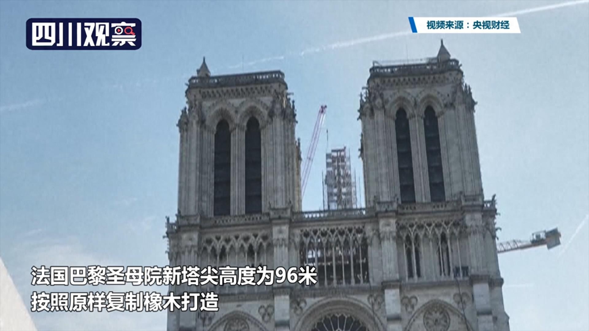 法国巴黎圣母院新塔尖高度为96米,按照原样复制打造,同时也采用相同的材质——橡木。公众可以透过脚手架看到新的塔尖,不过拆除脚手架的工作要等到明年建筑外部装饰全部完成后才能进行。法国总统马克龙曾在今年8月表示,巴黎圣母院将于2024年12月8日重新开放。